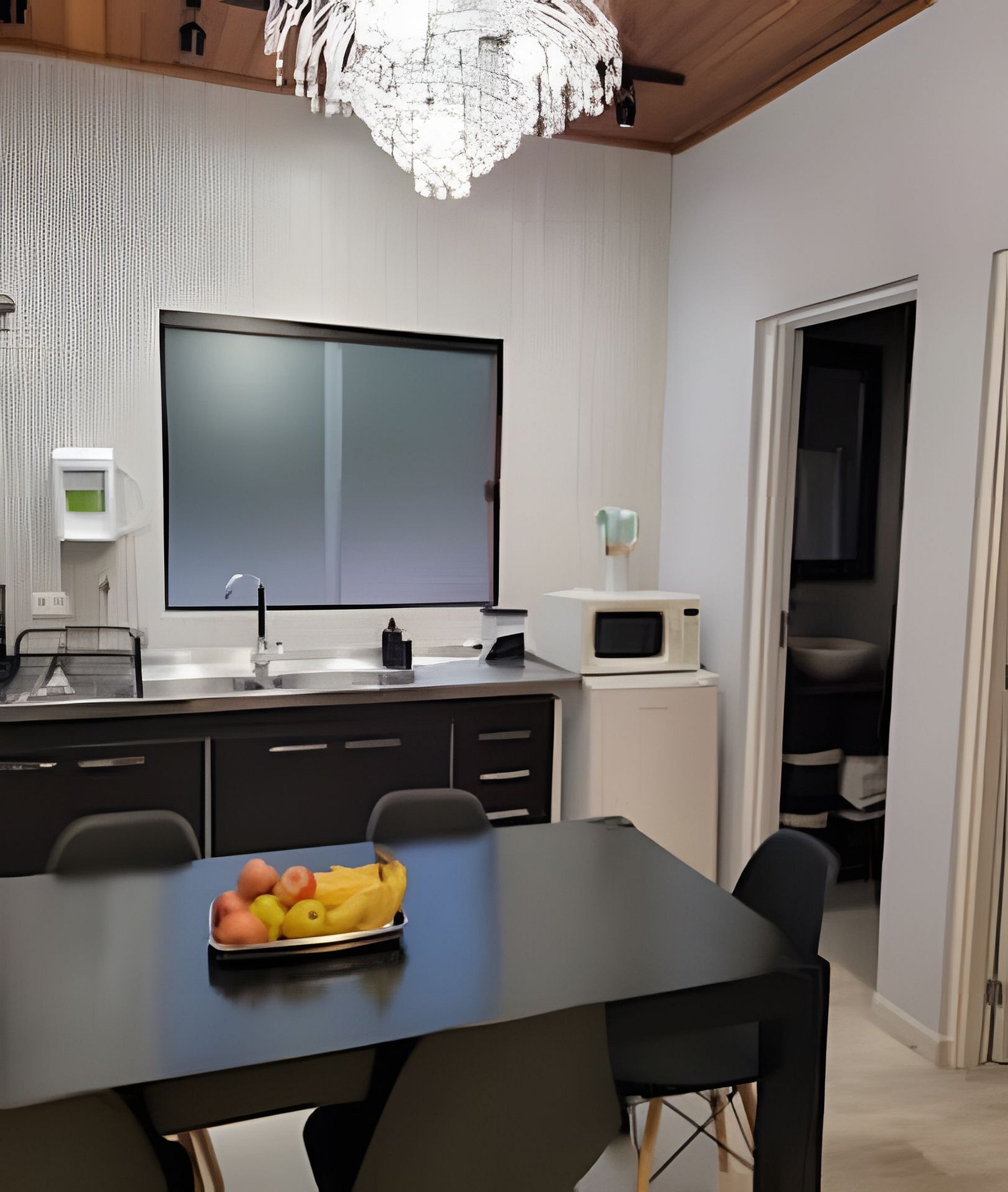 Não temos serviço de quarto, mas estaremos a disposição por telefone caso precisem de algo.